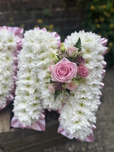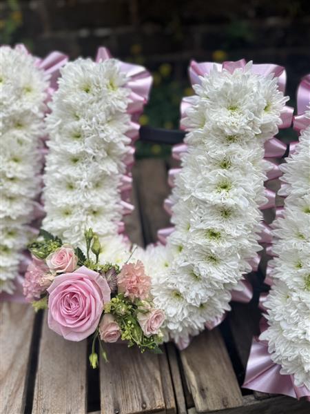 MUM based in Chrysanthemums. A choice of colours of ribbon and sprays. Please call to discuss any special requirements.